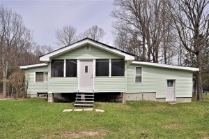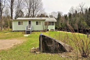 AFFORDABLE RIVERFRONT. SEE VIRTUAL TOUR. This cozy 988 sq ft year-round home or cottage on water boasts open concept cathedral style living room layout with a woodstove. Fully furnished. Modern kitchen w/appliances. 3 bedrooms. Central Vac. Satellite hookup. Overlooks Irondale River, a popular canoe route. 465 feet on river and 1.25 acres. All day sun. New drilled well/shingles in 2013. Great swimming & privacy. No buildings on opposite shore. Scenic Furnace Falls less than 2 kms away. Paved year-round road right to the driveway. Just bring your groceries and canoe and enjoy this cozy property in as little as 30 days!! 10 mins to Kinmount & the famous Highland`s Cinema & Kinmount Fair. Bobcaygeon, Minden & Haliburton are all under 30 minutes away. Family compound potential as home next door for sale. MLS 392210216. Just over 2 hours from the GTA.